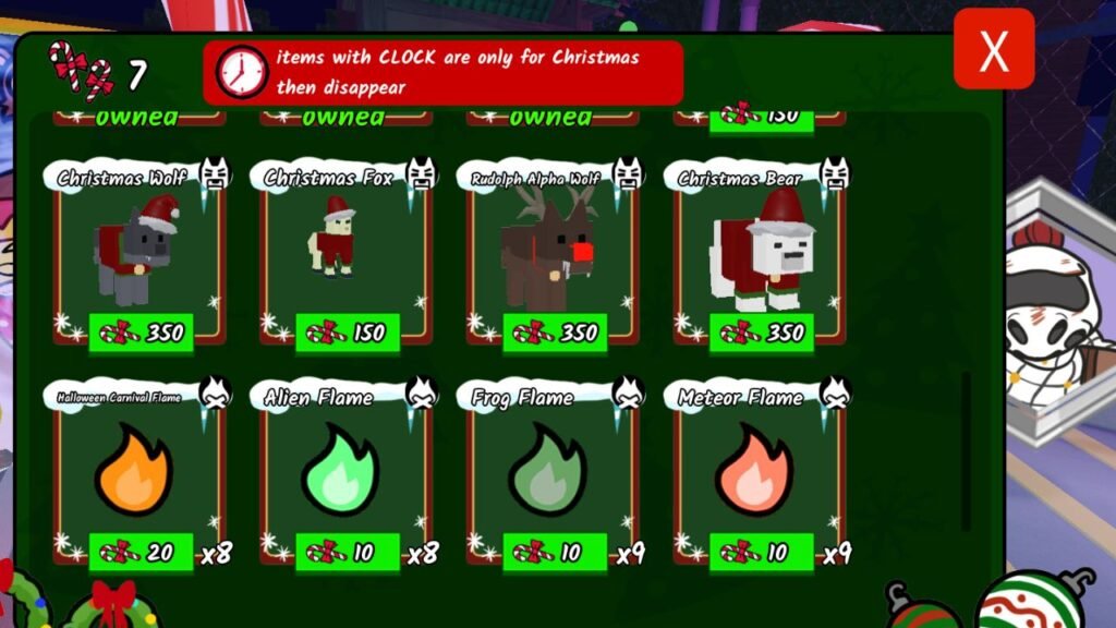 • Christmas Decor, which you can buy for 10 candies.