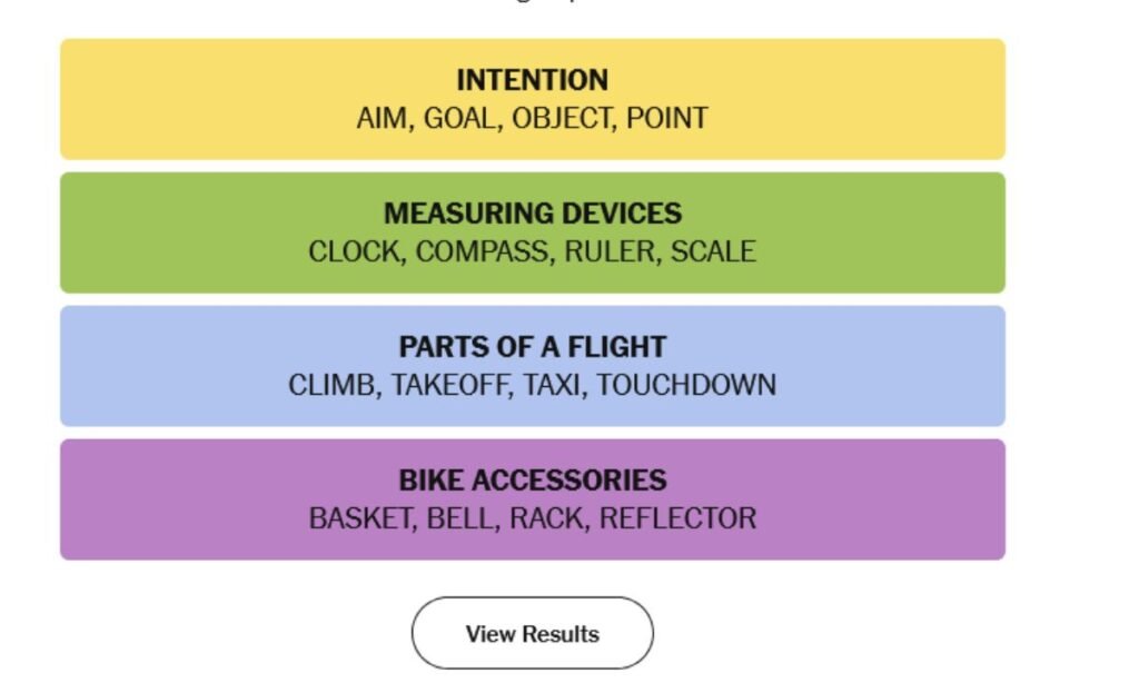 - If the category is correct, it will be removed from the grid, and the category name will be revealed.